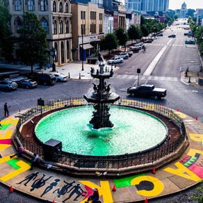 Court Square Fountain was built in 1885 in the area that had been the center of Montgomery’s slave trade prior to the Civil War. In June of 2020, a “Black Lives Matter” mural was painted around the fountain. Throughout the summer of 2020, the nation saw an uptake in public activism in response to the death of George Floyd and others at the hands of the police. The mural was completed on Juneteenth.